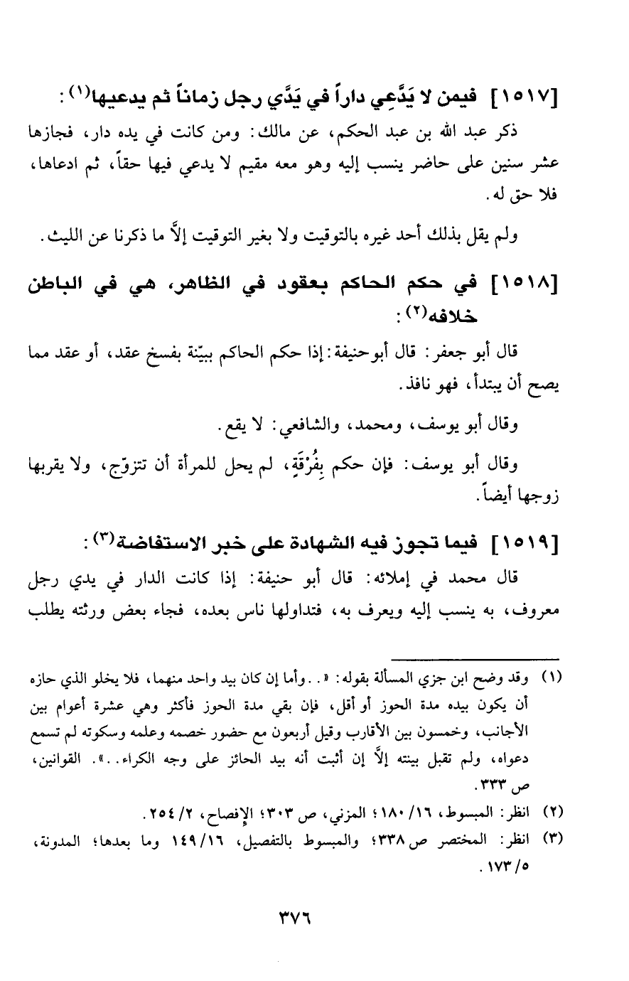 ذكر عبد الله بن عبد الحكم عَن مَالك وَمن كَانَت فِي يَده دَار فجازها عشر سِنِين على حَاضر ينْسب إِلَيْهِ وَهُوَ مَعَه مُقيم لَا يَدعِي فِيهَا حَقًا ثمَّ ادَّعَاهَا فَلَا حق لَهُ