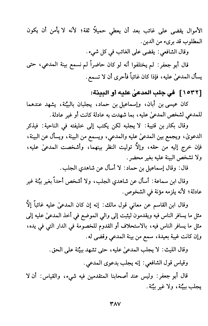 1532 - فِي جلب الْمُدعى عَلَيْهِ أَو الْبَيِّنَة