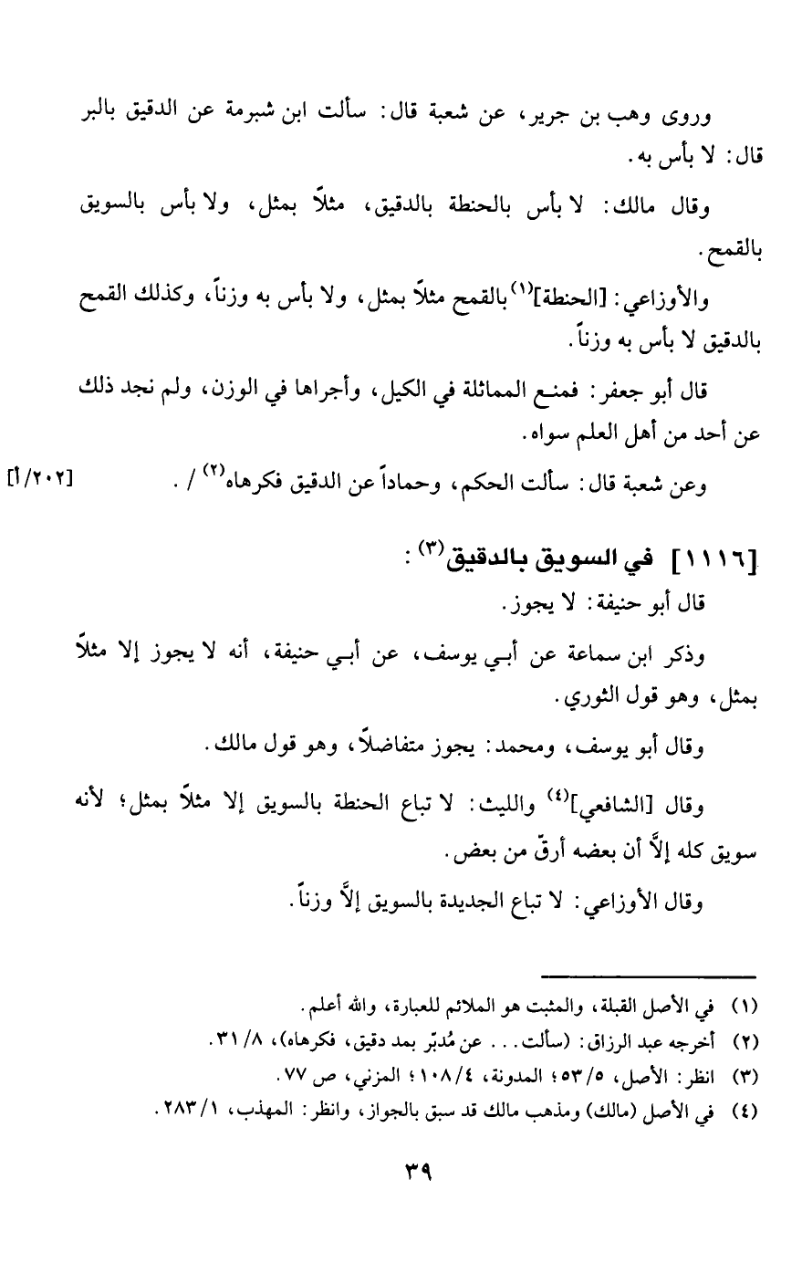 وَالْأَوْزَاعِيّ الْحِنْطَة بالقمح مثلا بِمثل وَلَا بَأْس بِهِ وزنا وَكَذَلِكَ الْقَمْح بالدقيق لَا بَأْس بِهِ وزنا