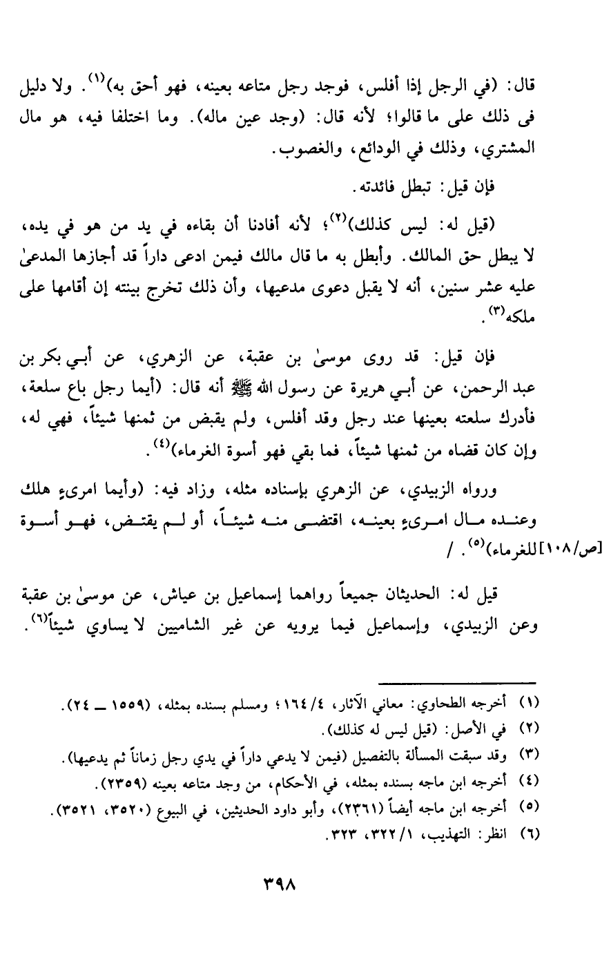 فَإِن قيل قد روى مُوسَى بن عقبَة عَن الزُّهْرِيّ عَن أبي بكر بن عبد الرَّحْمَن عَن أبي هُرَيْرَة عَن رَسُول الله صلى الله عَلَيْهِ وَسلم أَنه قَالَ أَيّمَا رجل بَاعَ سلْعَة فَأدْرك سلْعَته بِعَينهَا عِنْد رجل وَقد أفلس وَلم يقبض من ثمنهَا شَيْئا فَهِيَ لَهُ وَإِن كَانَ قَضَاهُ من ثمنهَا شَيْئا فَمَا بَقِي فَهُوَ أُسْوَة الْغُرَمَاء