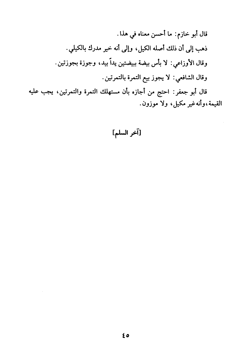 وَقَالَ الْأَوْزَاعِيّ لَا بَأْس بَيْضَة ببيضتين يدا بيد وجوزة بجوزتين