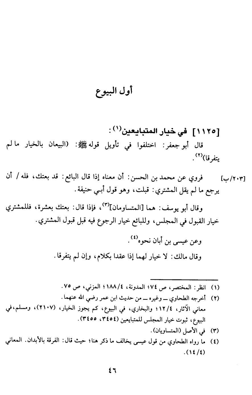 قَالَ أَبُو جَعْفَر اخْتلفُوا فِي تَأْوِيل قَوْله صلى الله عَلَيْهِ وَسلم البيعان بِالْخِيَارِ مالم يَتَفَرَّقَا