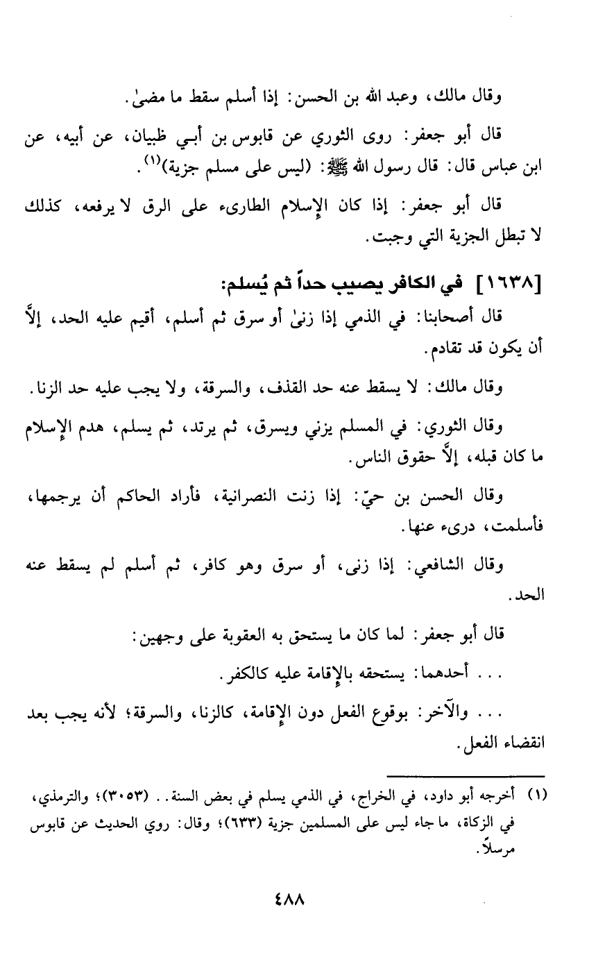 1638 - فِي الْكَافِر يُصِيب حدا ثمَّ يسلم