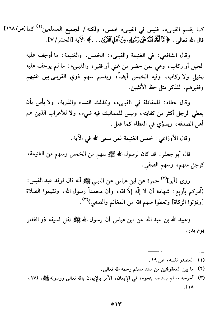 روى أَبُو جَمْرَة عَن ابْن عَبَّاس عَن النَّبِي صلى الله عَلَيْهِ وَسلم أَنه قَالَ لوفد عبد الْقَيْس آمركُم بِأَرْبَع شَهَادَة أَن لَا إِلَه الله وَأَن مُحَمَّد رَسُول الله وتقيموا الصَّلَاة وتؤتوا الزَّكَاة وتعطوا سهم الله من الْمَغَانِم والصفي