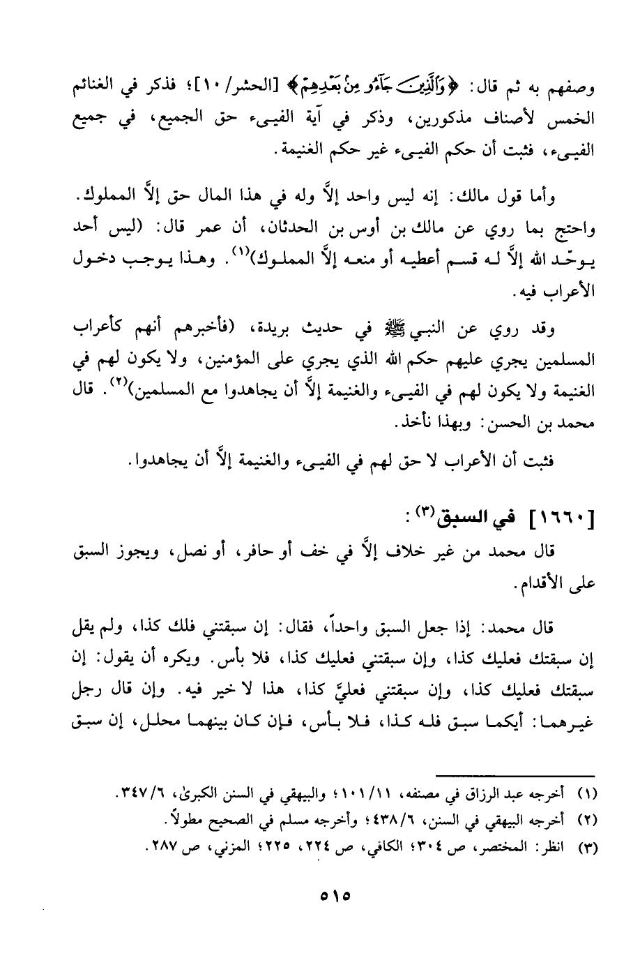 وَقد رُوِيَ عَن النَّبِي صلى الله عَلَيْهِ وَسلم فِي حَدِيث بُرَيْدَة فَأخْبرهُم أَنهم كأعراب الْمُسلمين يجْرِي عَلَيْهِم حكم الله الَّذِي يَجْزِي على الْمُؤمنِينَ وَلَا يكون لَهُم فِي الْغَنِيمَة وَلَا يكون لَهُم فِي الفيئ وَالْغنيمَة إِلَّا أَن يجاهدوا مَعَ الْمُسلمين قَالَ مُحَمَّد بن الْحسن وَبِهَذَا نَأْخُذ
