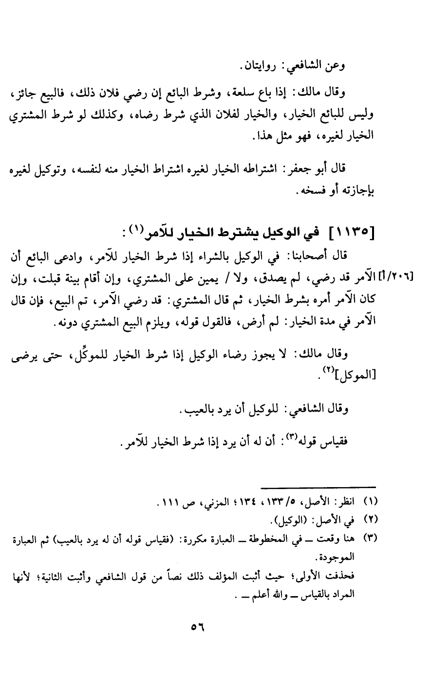 1135 - فِي التَّوْكِيل يشْتَرط الْخِيَار للْآمِر