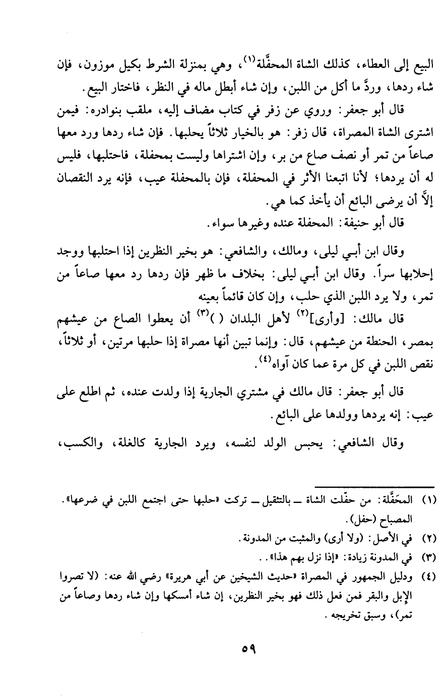 قَالَ أَبُو حنيفَة المحفلة عِنْده وَغَيرهَا سَوَاء وَقَالَ ابْن أبي ليلى وَمَالك وَالشَّافِعِيّ هُوَ بِخَير النظرين إِذا احتلبها وَوجد إحلابها سرا وَقَالَ ابْن أبي ليلى بِخِلَاف مَا ظهر فَإِن ردهَا رد مَعهَا صَاعا من تمر وَلَا يرد اللَّبن الَّذِي حلب وَإِن كَانَ قَائِما بِعَيْنِه