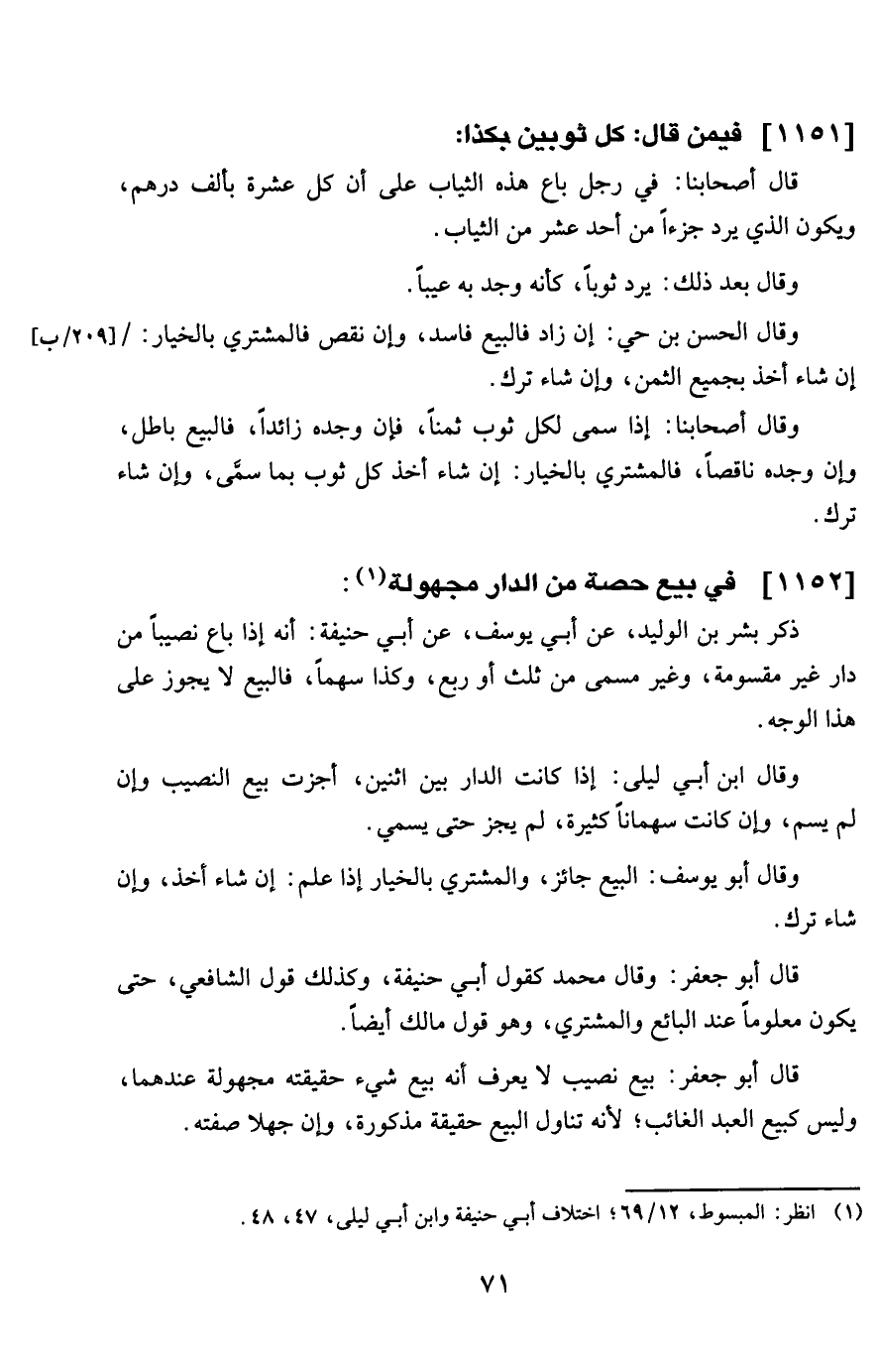 1151 - فِيمَن قَالَ كل ثَوْبَيْنِ بِكَذَا