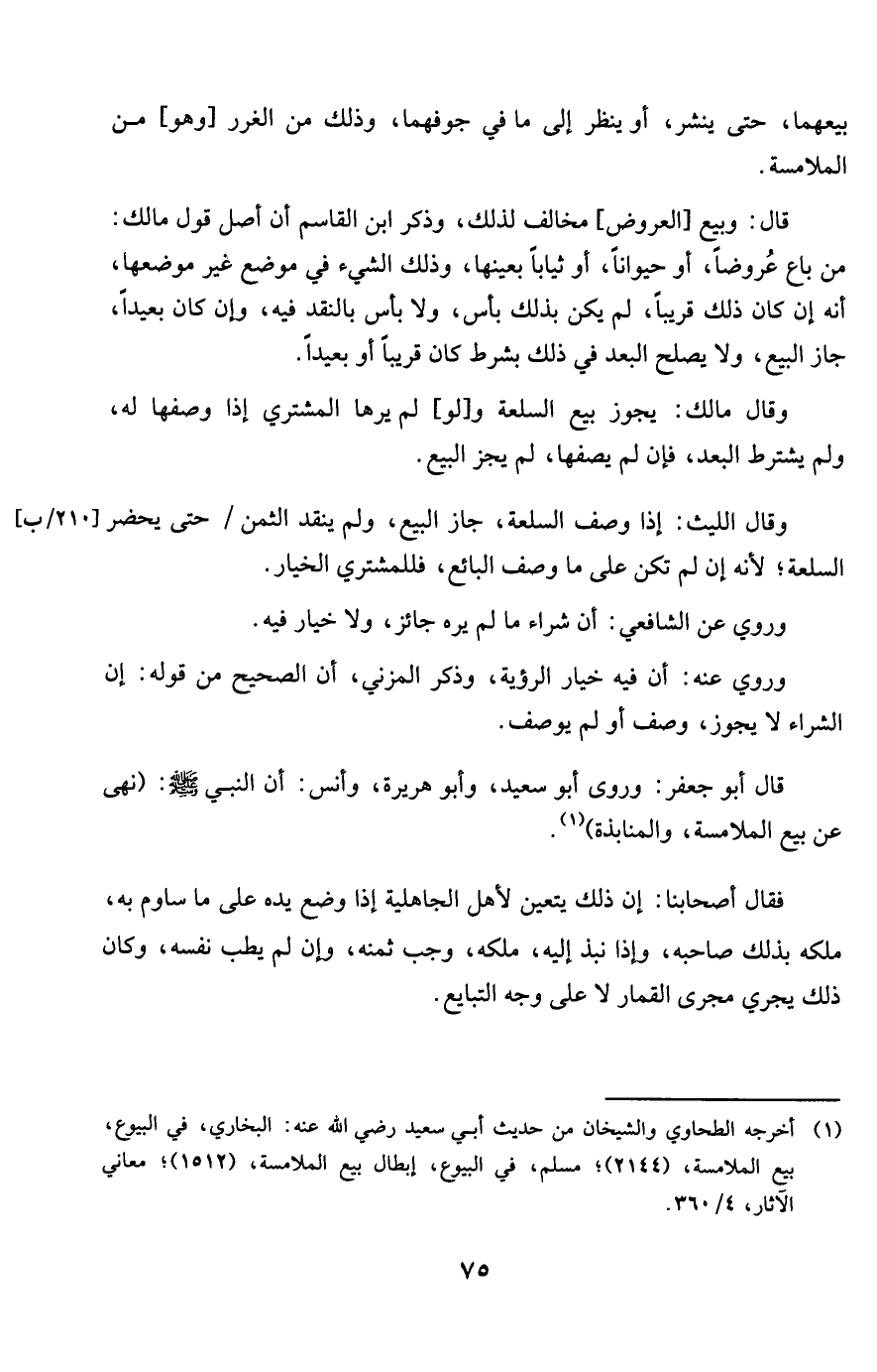 بيعهمَا حَتَّى ينظر أَو ينضر إِلَى مَا فِي جوفهما وَذَلِكَ من الْغرَر وَهُوَ من الملامسوة