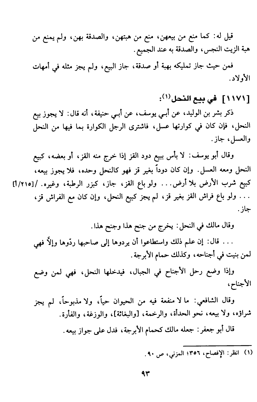 ذكر بشر بن الْوَلِيد عَن أبي يُوسُف عَن أبي حنيفَة أَنه قَالَ لَا يجوز بيع النَّحْل فَإِن كَانَ فِي كوارتها عسل فَاشْترى الرجل الكوارة بِمَا فِيهَا من النَّحْل وَالْعَسَل جَازَ