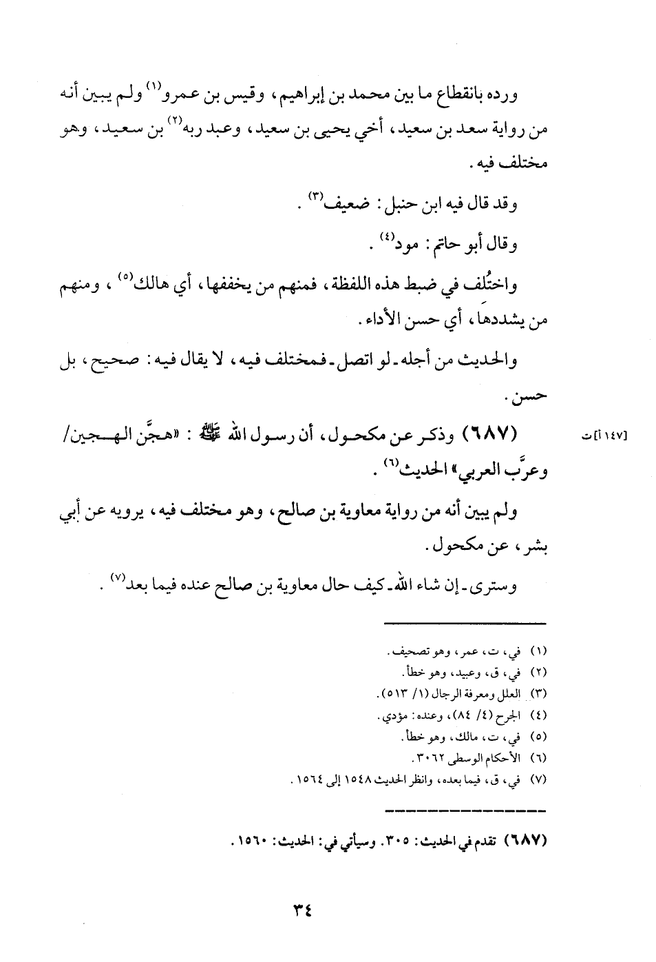 (687) وَذكر عَن مَكْحُول، أَن رَسُول الله - صَلَّى اللَّهُ عَلَيْهِ وَسَلَّم َ -: " هجن الهجين / وعرب الْعَرَبِيّ " الحَدِيث.