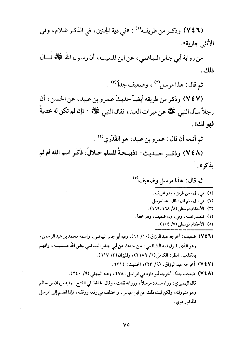 (746) وَذكر من طَرِيقه: " فِي دِيَة الْجَنِين، فِي الذّكر غُلَام، وَفِي الْأُنْثَى جَارِيَة ".