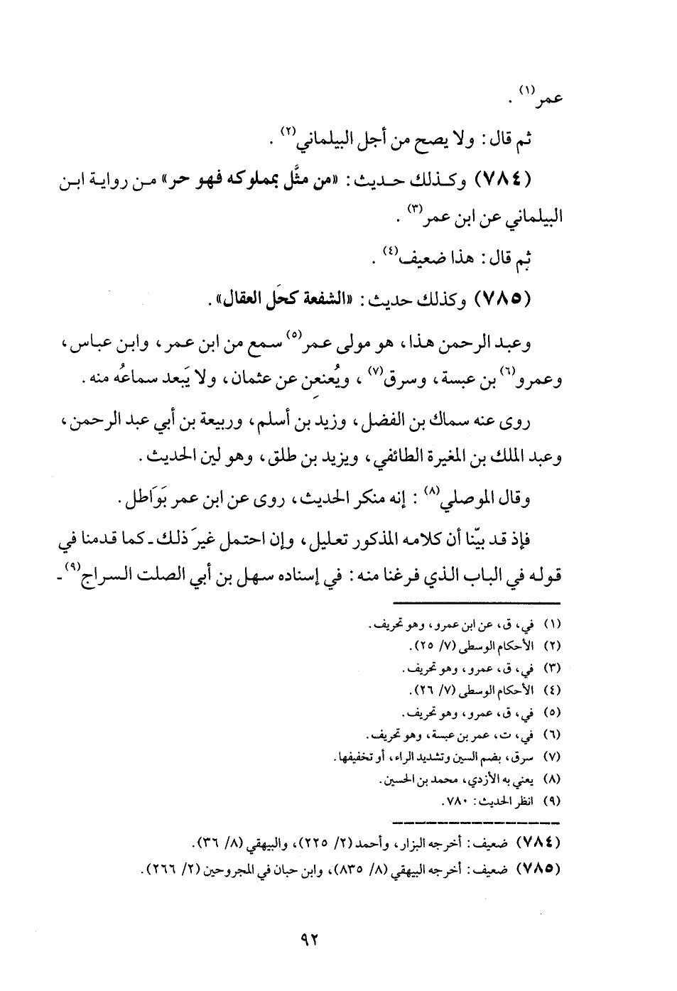 (784) وَكَذَلِكَ حَدِيث: " من مثل بِمَ ملوكه فَهُوَ حر " من رِوَايَة ابْن الْبَيْلَمَانِي عَن ابْن عمر.