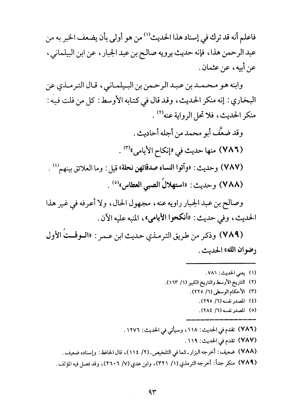 (789) وَذكر من طَرِيق التِّرْمِذِيّ حَدِيث ابْن عمر: " الْوَقْت الأول رضوَان الله " الحَدِيث.