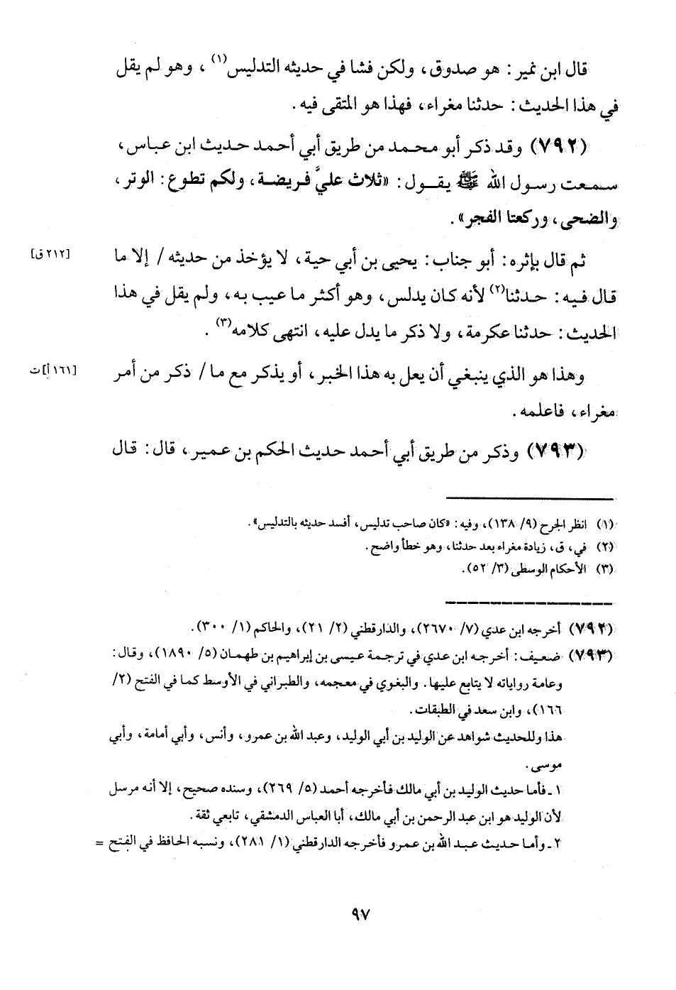 (792) وَقد ذكر أَبُو مُحَمَّد من طَرِيق أبي أَحْمد حَدِيث ابْن عَبَّاس، سَمِعت رَسُول الله - صَلَّى اللَّهُ عَلَيْهِ وَسَلَّم َ - يَقُول: " ثَلَاث عَليّ فَرِيضَة، وَلكم تطوع: الْوتر، وَالضُّحَى، وركعتا الْفجْر ".