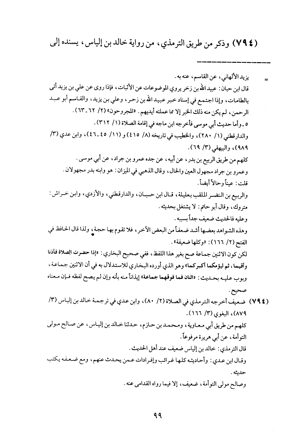 (794) وَذكر من طَرِيق التِّرْمِذِيّ، من رِوَايَة خَالِد بن إلْيَاس، يسْندهُ إِلَى