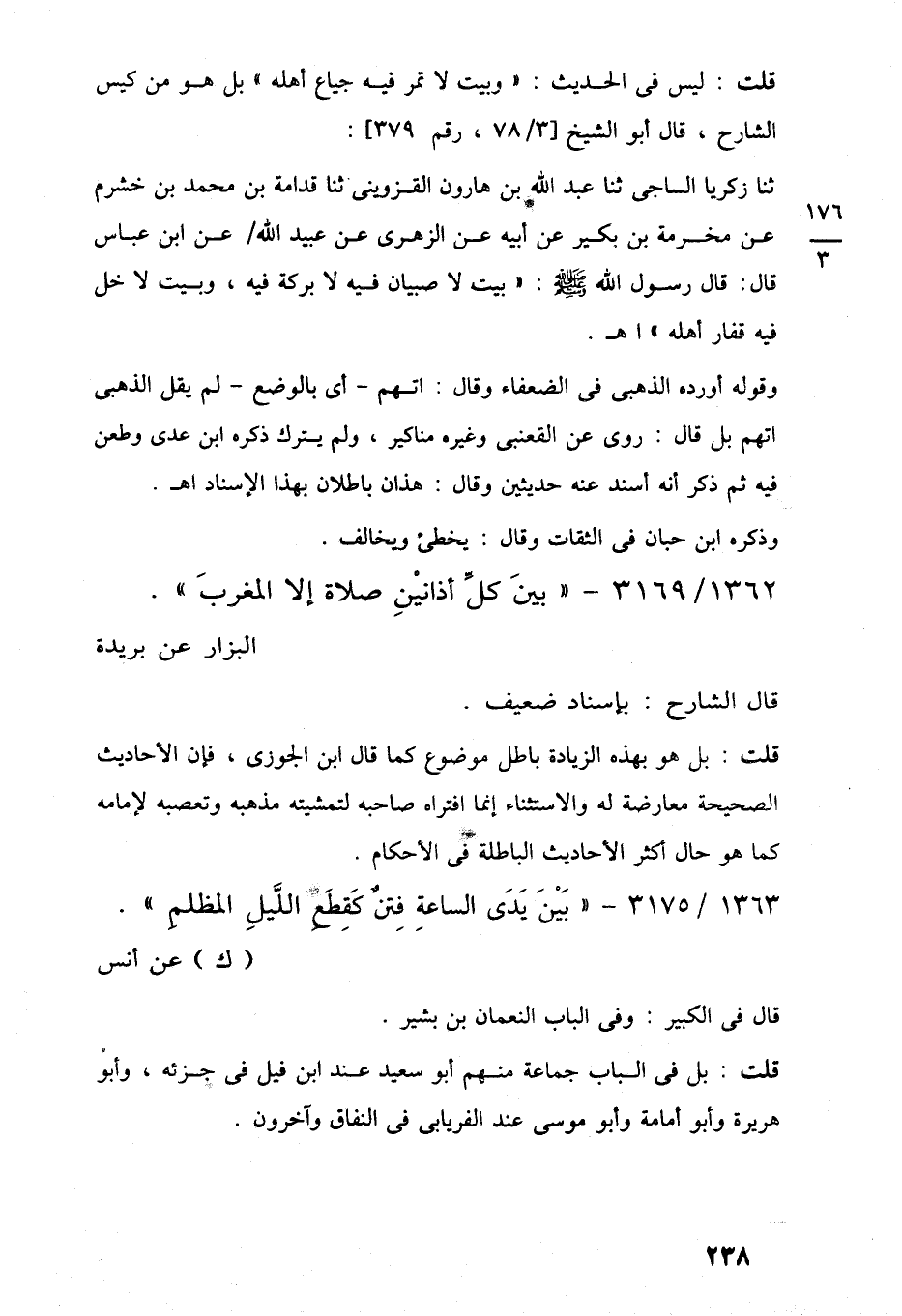 1362/ 3169 - "بينَ كلِّ أذانيْنِ صلاة إلا المغربَ".