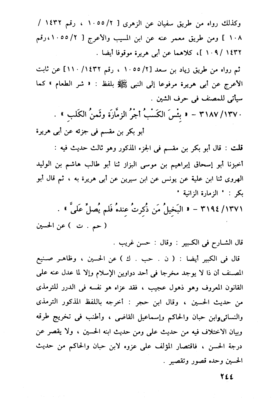 1370/ 3187 - "بِئْسَ الكَسْبُ أجْرُ الزمَّارَة وثَمنُ الكَلبِ".
