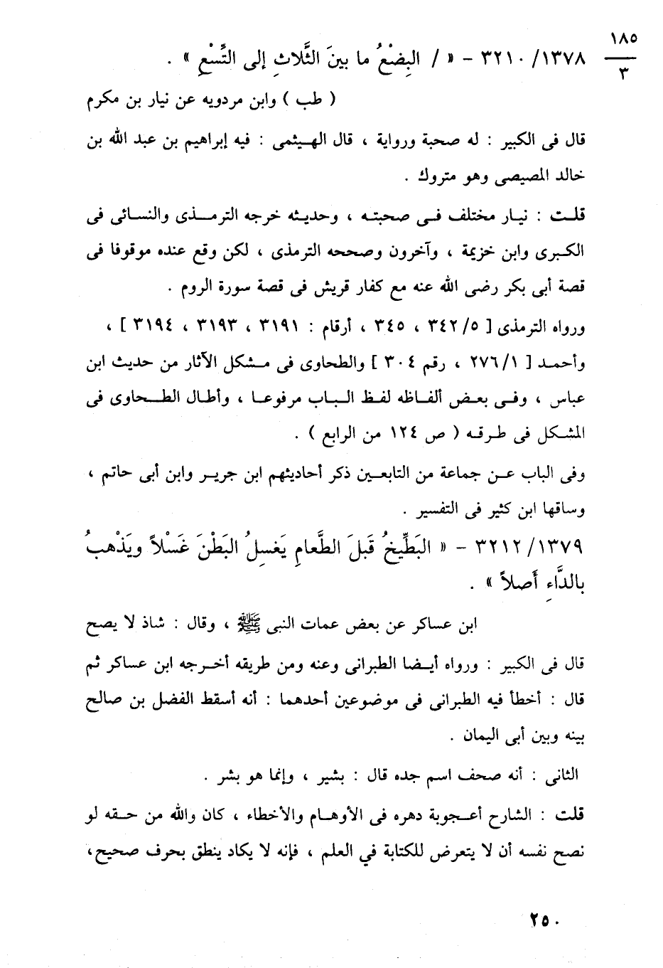 1378/ 3210 - "البِضْعُ ما بينَ الثَّلاثِ إلى التِّسْعِ".