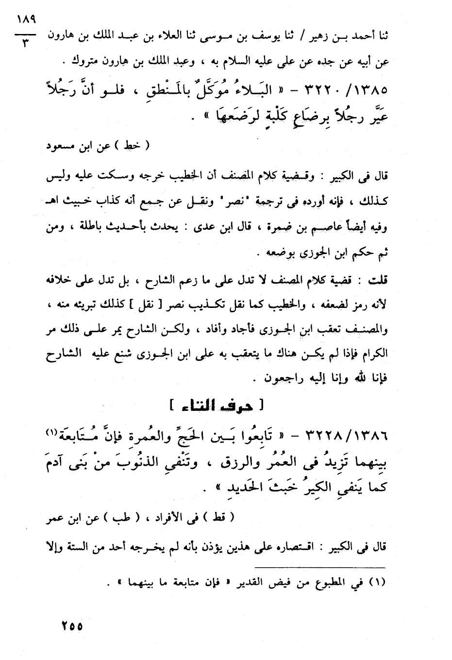 1386/ 3228 - " تَابعُوا بَين الحَجِّ والعُمرةِ فإنَّ مُتَابعَة (¬1) بيِنهما تَزِيدُ في العُمُر والرزق، وتَنْفى الذنُوبَ منْ بَنى آدمَ كما يَنفى الكِيرُ خَبثَ الحَديدِ".