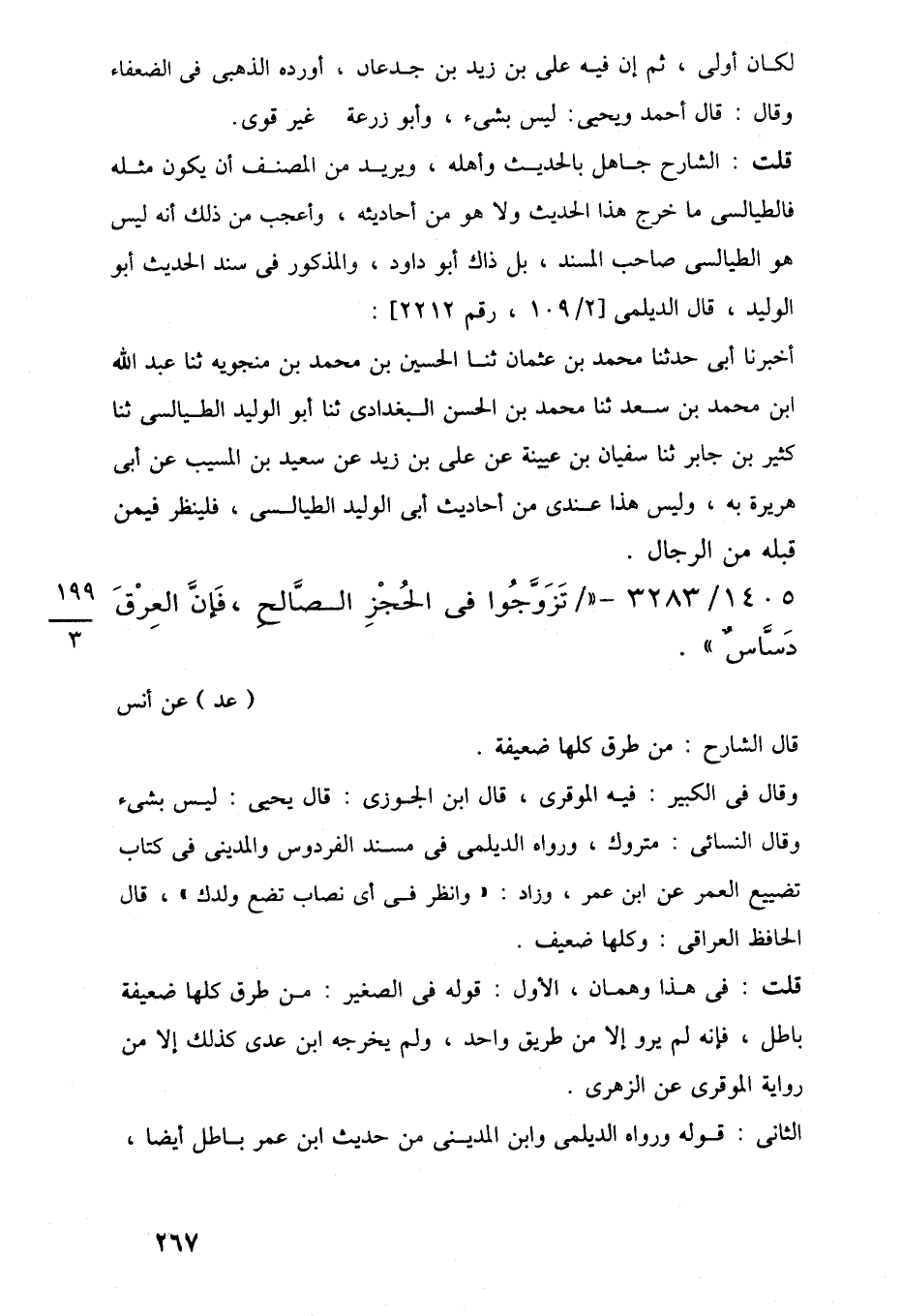 1405/ 3283 - "تَزَوَّجُوا في الحُجْزِ الصَّالحِ، فَإِنَّ العِرْقَ دَسَّاسٌ".