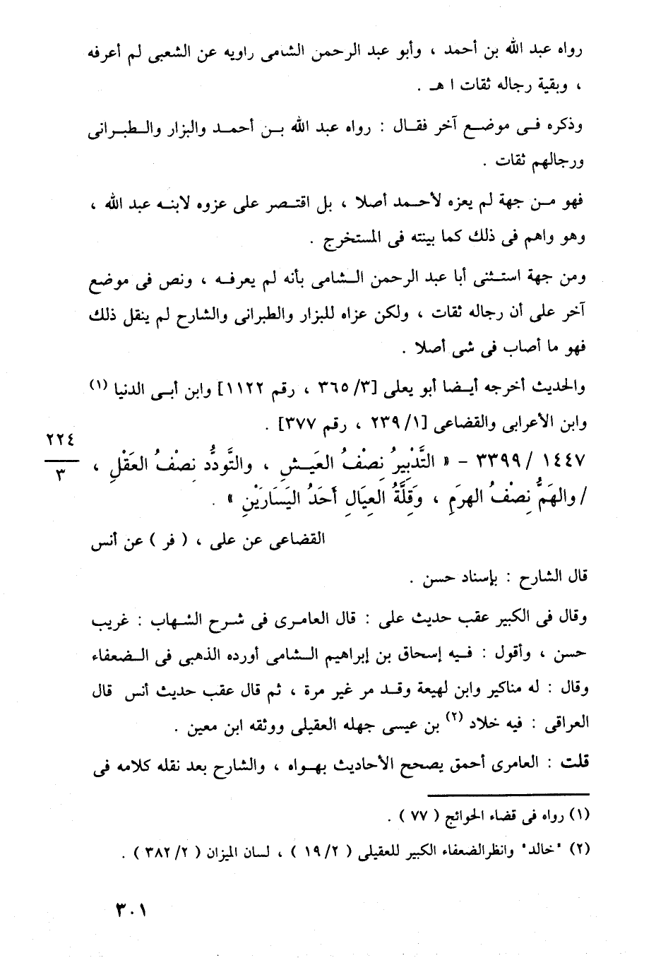 ومن جهة استثنى أبا عبد الرحمن الشامى بأنه لم يعرفه، ونص في موضع آخر على أن رجاله ثقات، ولكن عزاه للبزار والطبرانى والشارح لم ينقل ذلك فهو ما أصاب في شئ أصلًا.