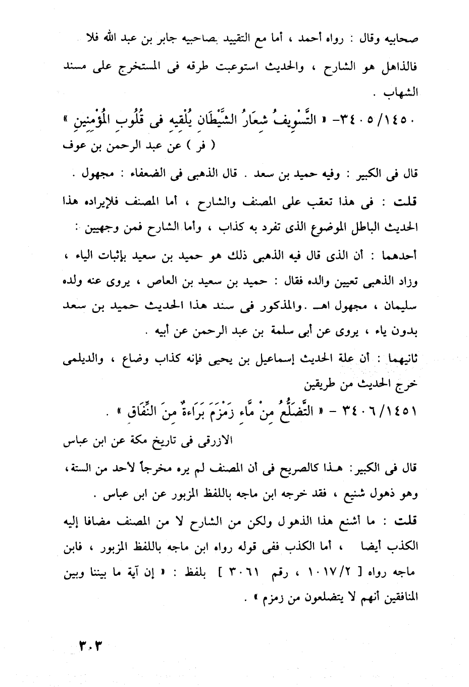 1451/ 3406 - "التَّضَلُّعُ مِنْ مَّاءِ زَمْزَمَ بَرَاءةٌ مِنَ النِّفَاقِ".
