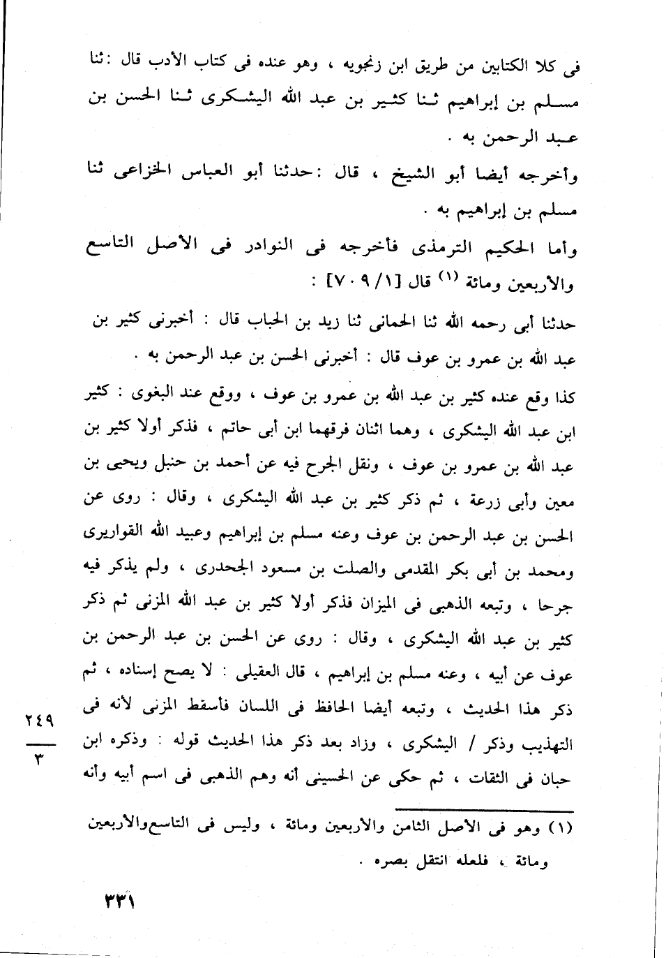 في كلا الكتابين من طريق ابن زنجويه، وهو عنده في كتاب الأدب قال: ثنا مسلم بن إبراهيم ثنا كثير بن عبد اللَّه اليشكرى ثنا الحسن بن عبد الرحمن به.