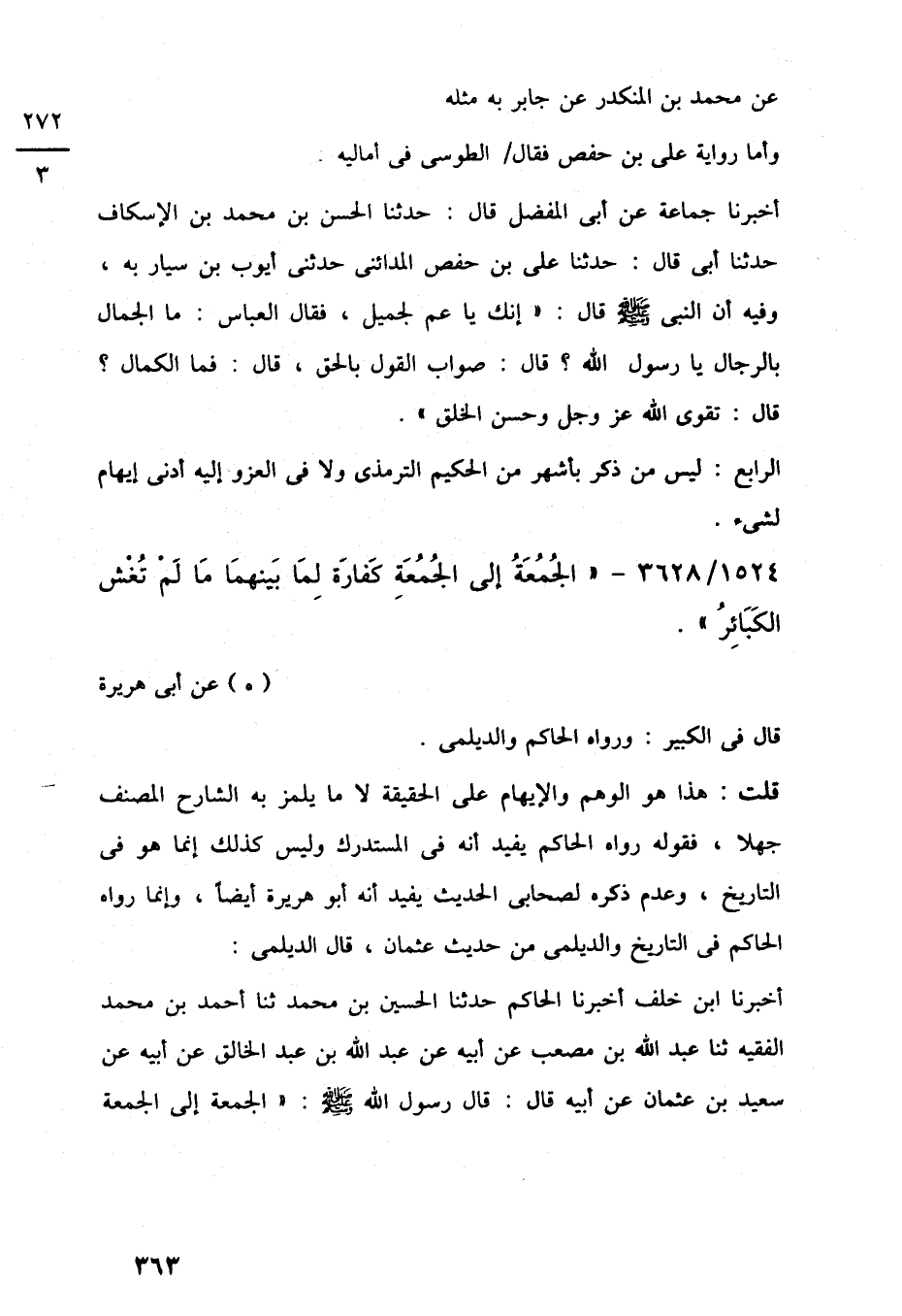 1524/ 3628 - "الجُمُعَةُ إلى الجُمُعَةِ كَفارَة لِمَا بَينهمَا مَا لَمْ تُغْش الكَبَائِرُ".