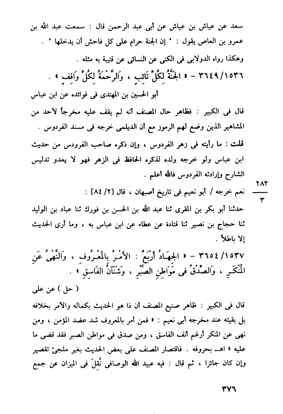 سعد عن عياش بن عياش عن أبي عبد الرحمن قال: سمعت عبد اللَّه بن عمرو بن العاص يقول: "إن الجنة حرام على كل فاحش أن يدخلها".