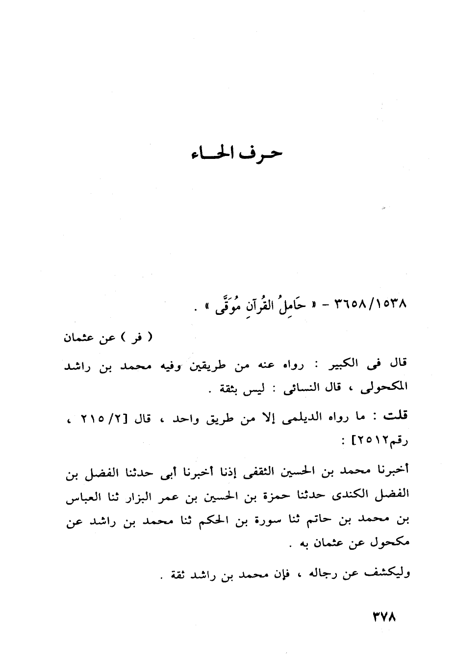 1538/ 3658 - " حَامِلُ القُرآنِ مُوَقَّى".