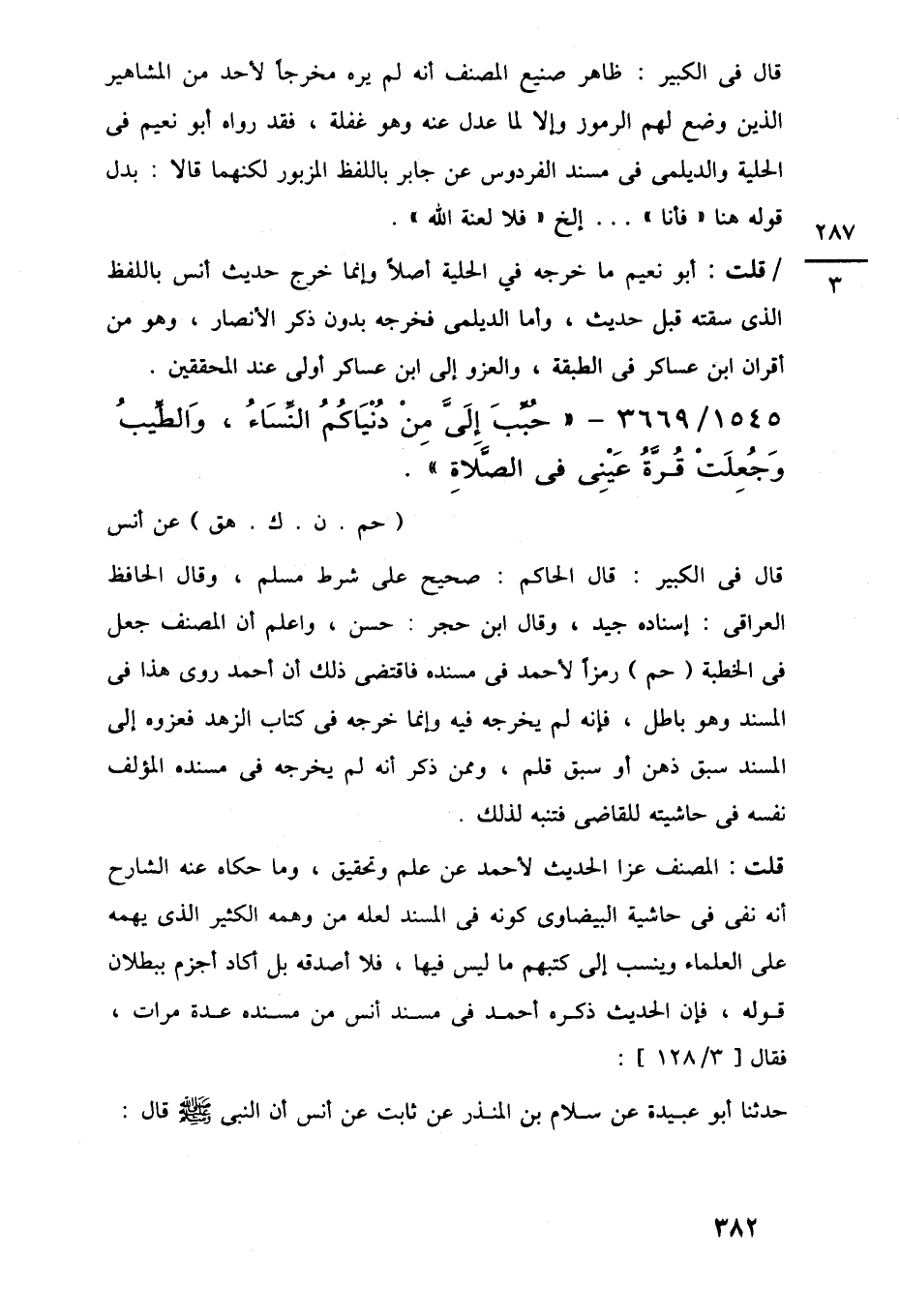 1545/ 3669 - "حُبِّبَ إِلَيَّ مِنْ دُنْيَاكُمُ النِّسَاءُ، وَالطِّيبُ وَجُعِلَتْ قُرَّةُ عَيْنِى في الصَّلَاةِ".
