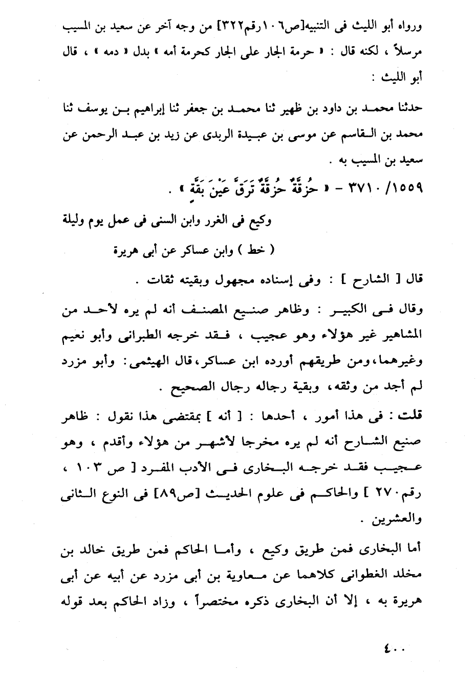 قلت: في هذا أمور، أحدها: [أنه] بمقتضى هذا نقول: ظاهر صنيع الشارح أنه لم يره مخرجًا لأشهر من هؤلاء وأقدم، وهو عجيب فقد خرجه البخارى في الأدب المفرد [ص 103، رقم 270] والحاكم في علوم الحديث [ص 89] في النوع الثانى والعشرين.