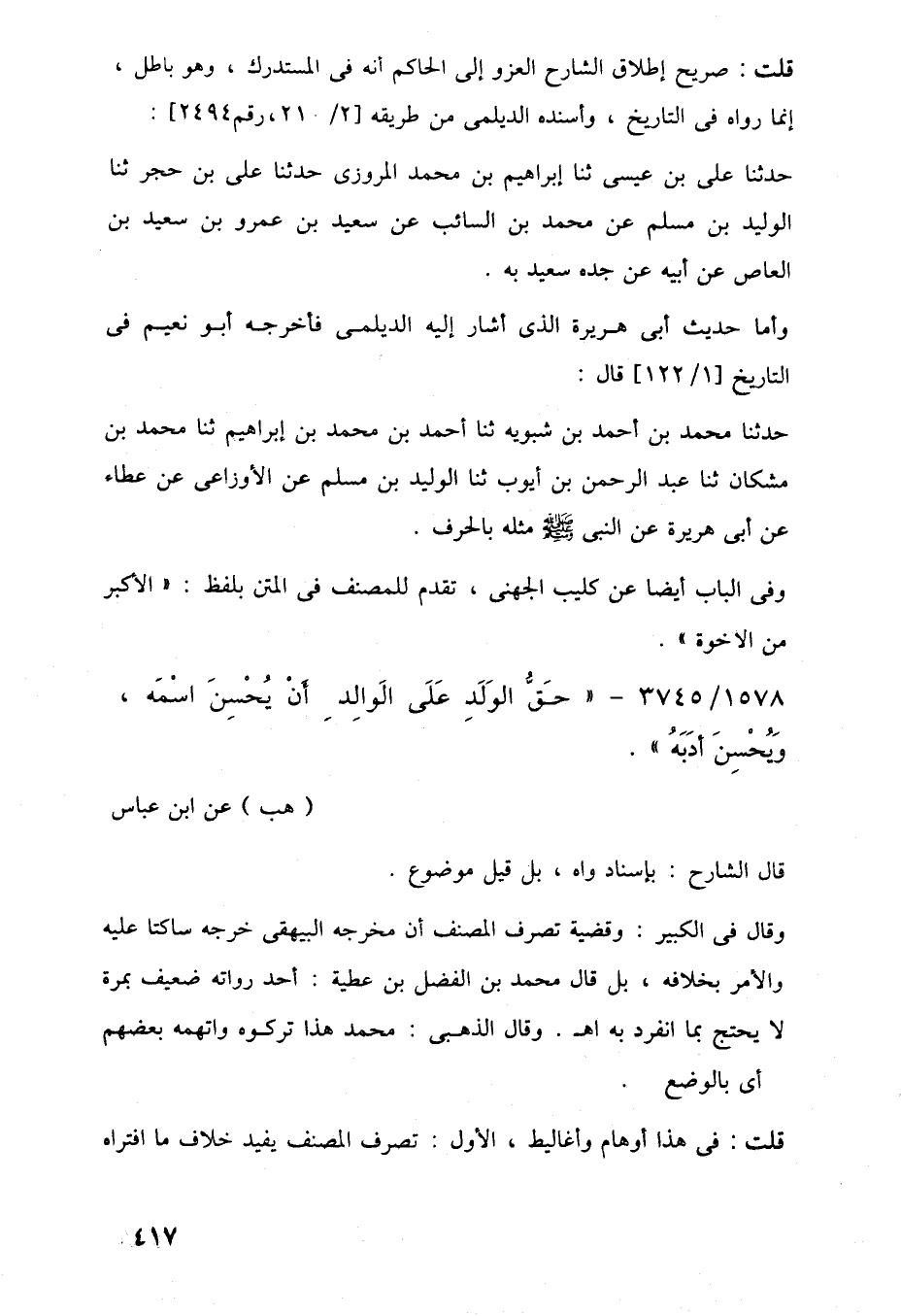 1578/ 3745 - "حَقُّ الوَلَدِ عَلَى الَوالِدِ أنْ يُحْسِنَ اسْمَه، وَيُحْسِنَ أدَبَهُ".