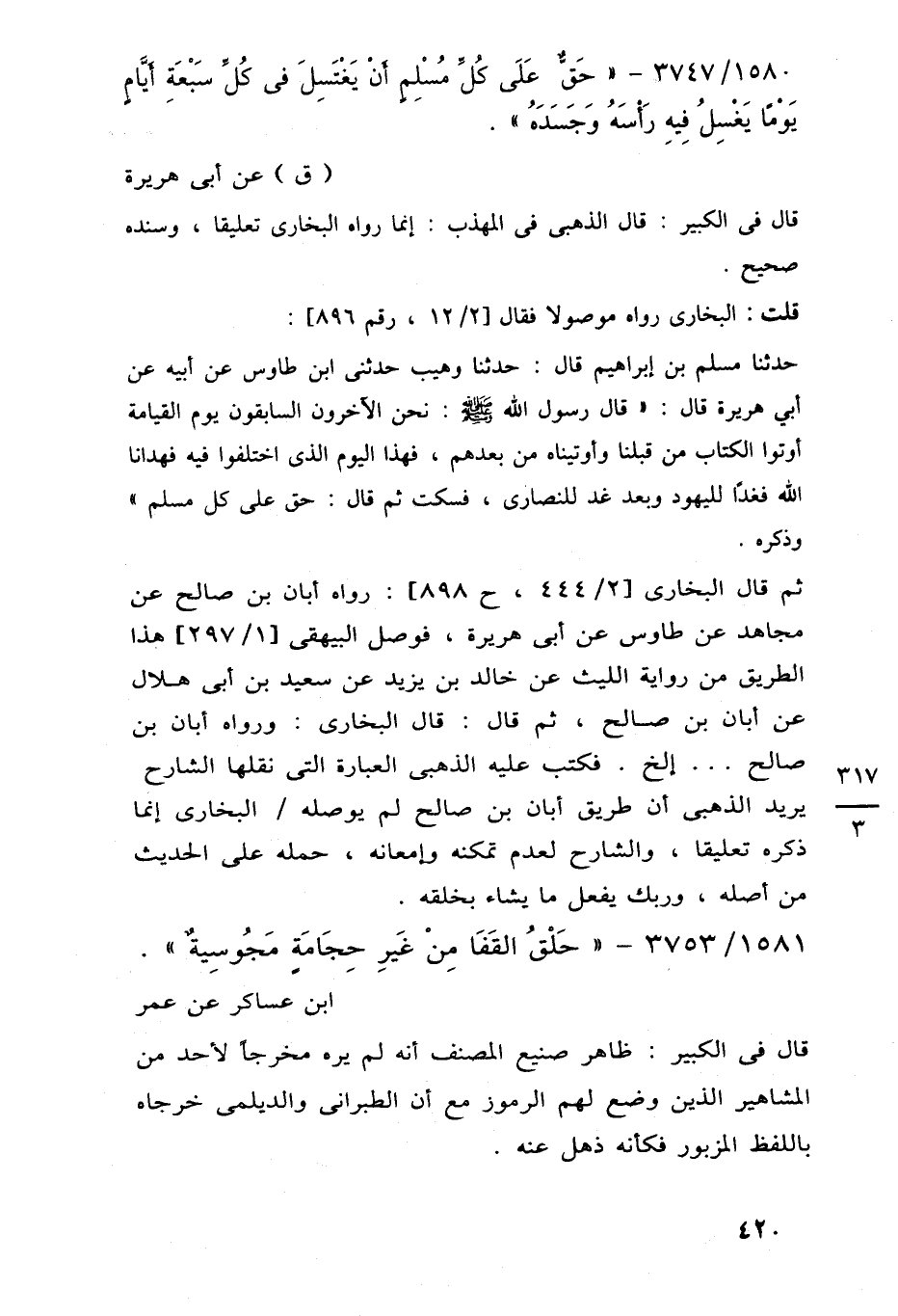 1581/ 3753 - "حَلْقُ القَفَا مِنْ غَيرِ حِجَامَة مَجُوسِيةٌ".