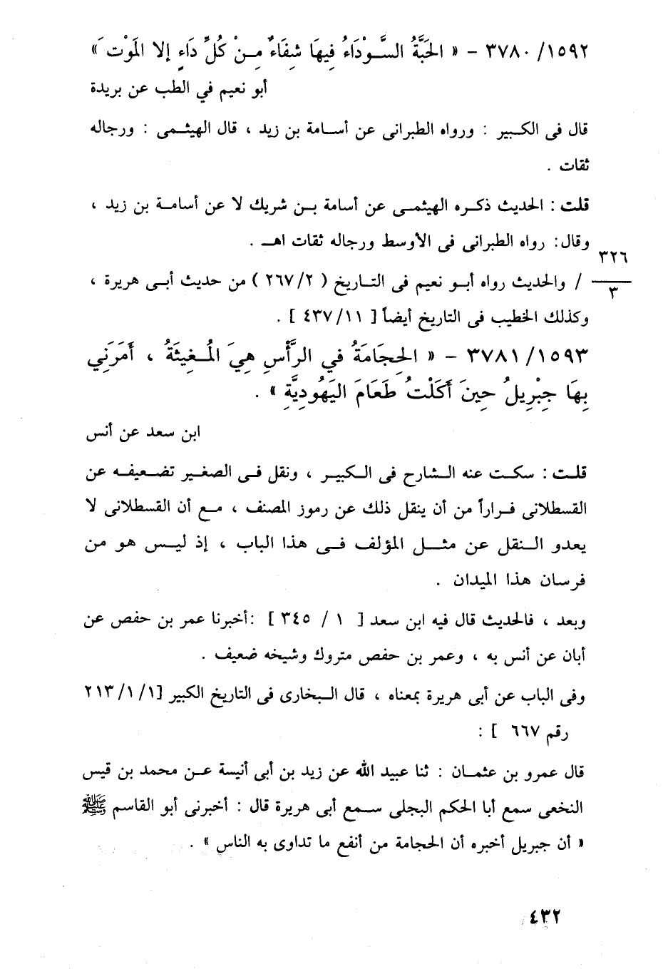 1592/ 3780 - "الحَبَّةُ السَّوْدَاءُ فِيهَا شِفَاءٌ مِنْ كُلِّ دَاءٍ إلا المَوْتَ"