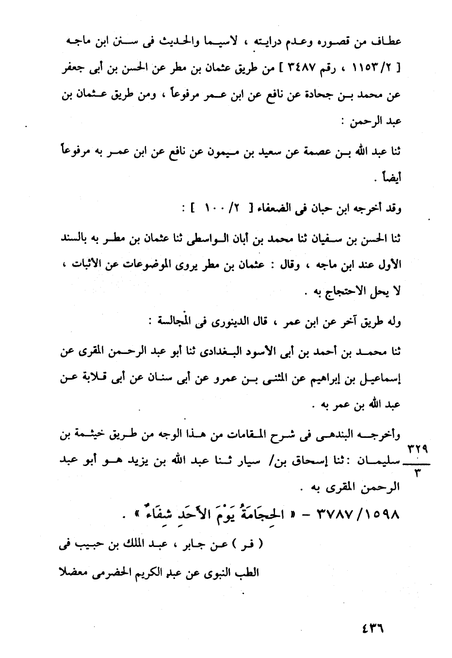 1598/ 3787 - "الحِجَامَةُ يَوْمَ الأَحَدِ شِفَاءٌ".