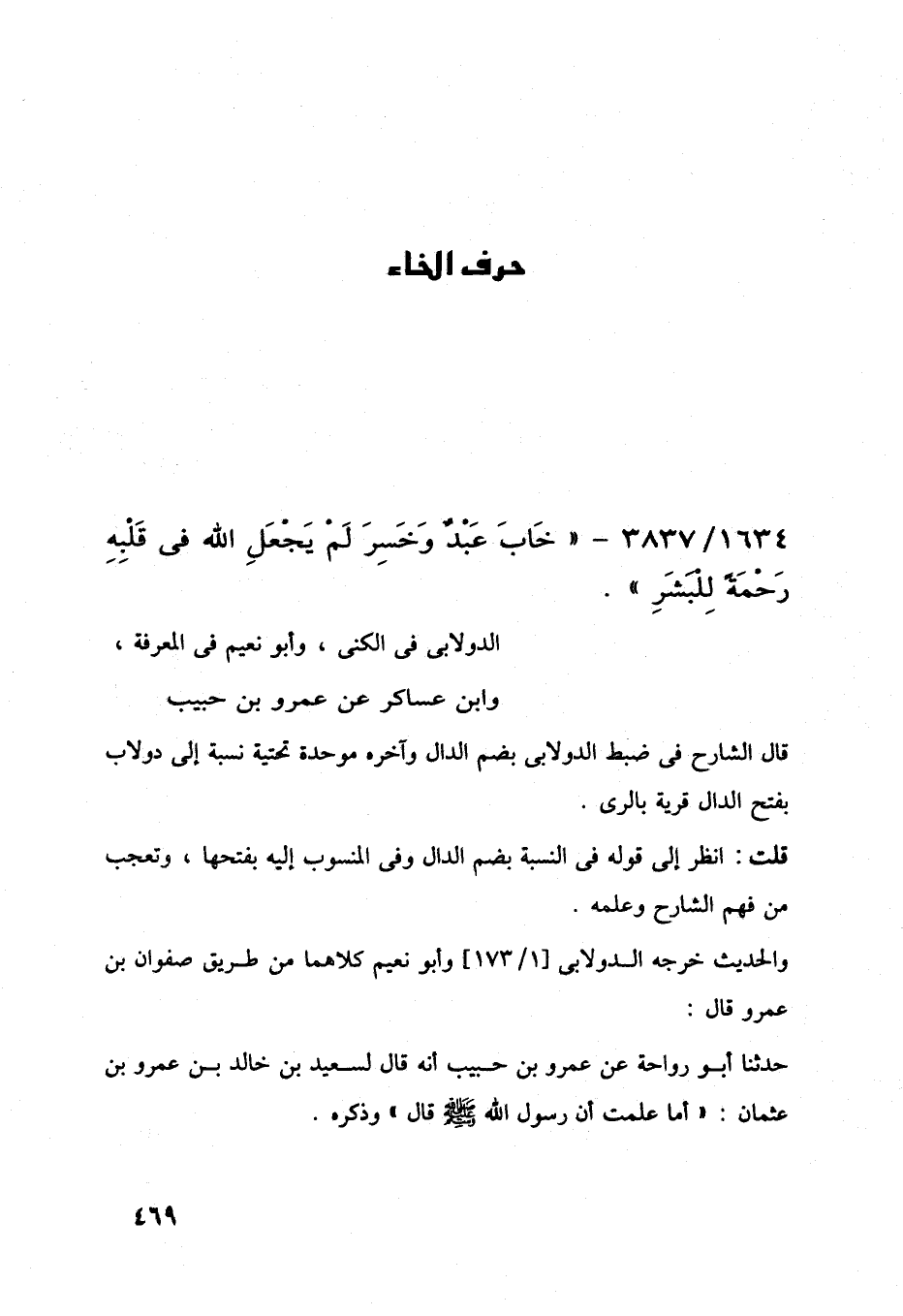 1634/ 3837 - " خَابَ عَبْدٌ وَخَسِرَ لَمْ يَجْعَلِ اللَّه في قَلْبِهِ رَحْمَةً لِلْبَشَرِ".
