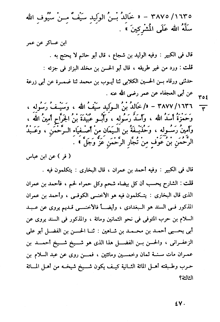 1635/ 3875 - "خَالِدُ بْنُ الوَلِيدِ سَيْفٌ مِنْ سُيُوفِ اللَّه سَلَّهُ اللَّه عَلَى المُشْرِكِينَ".