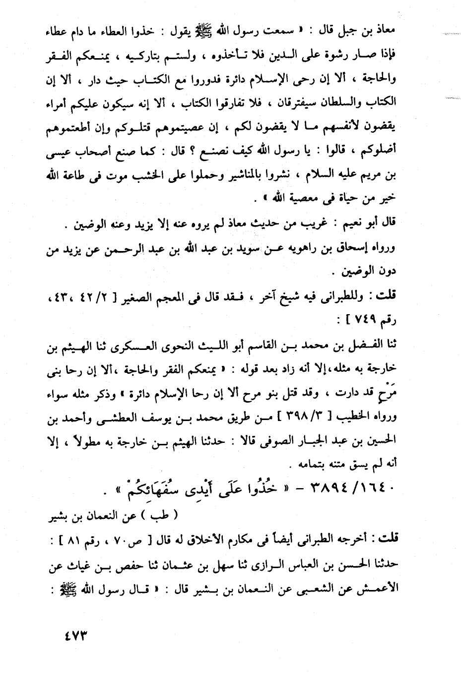 قلت: أخرجه الطبرانى أيضًا في مكارم الأخلاق له قال [ص 70، رقم 81]: حدثنا الحسن بن العباس الرازى ثنا سهل بن عثمان ثنا حفص بن غياث عن الأعمش عن الشعبى عن النعمان بن بشير قال: "قال رسول اللَّه -صلى اللَّه عليه وسلم-: