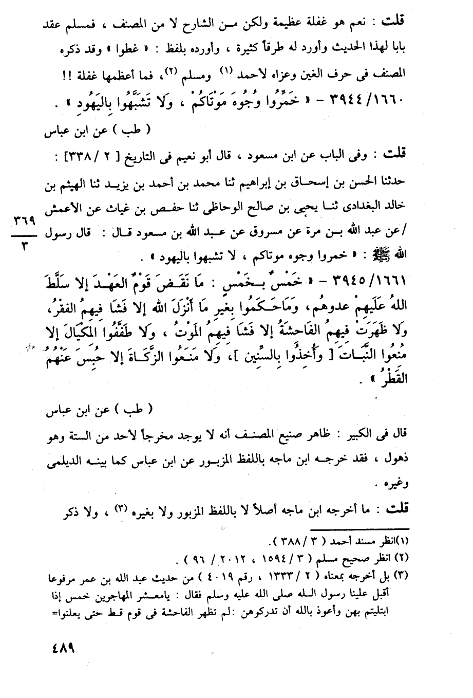 1660/ 3944 - "خَمِّرُوا وُجُوهَ مَوْتَاكُمْ، وَلا تَشَبَّهوا بِاليَهُودِ".