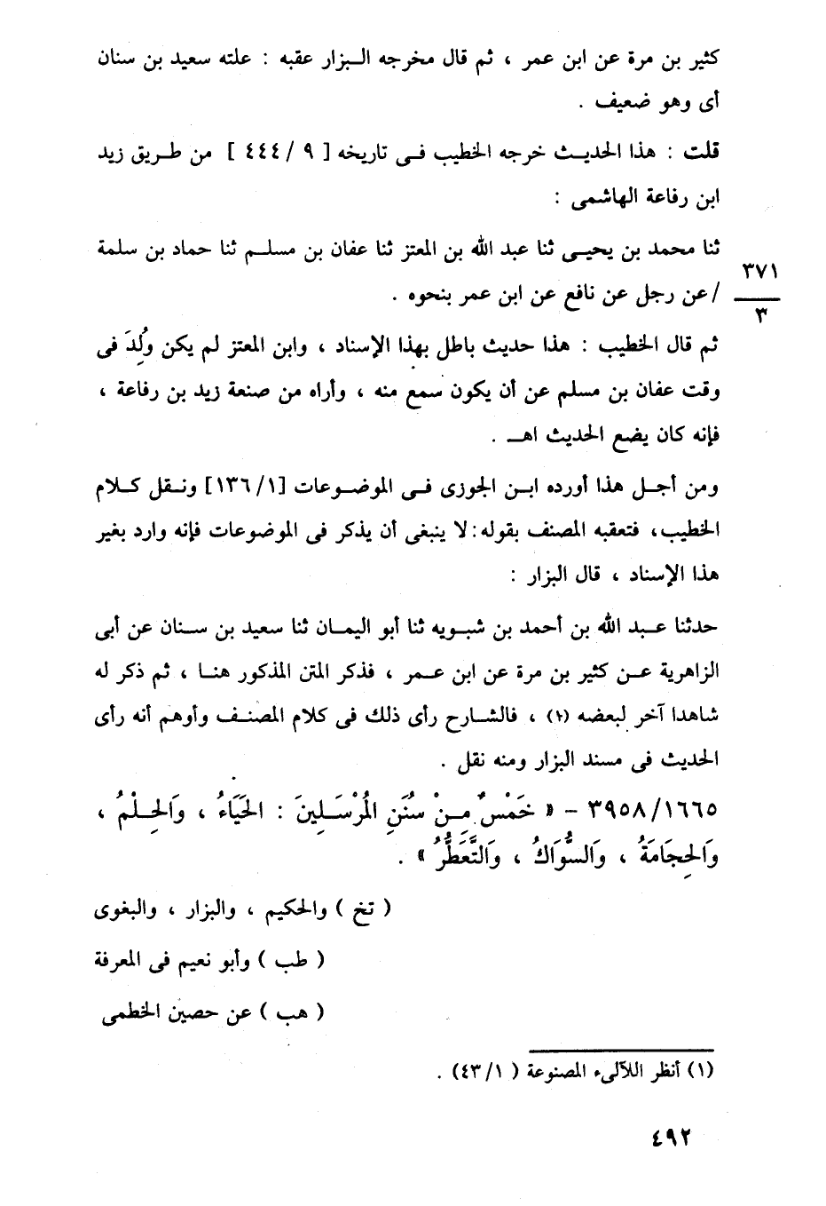 (¬1) انظر اللآلئ المصنوعة (1/ 43).