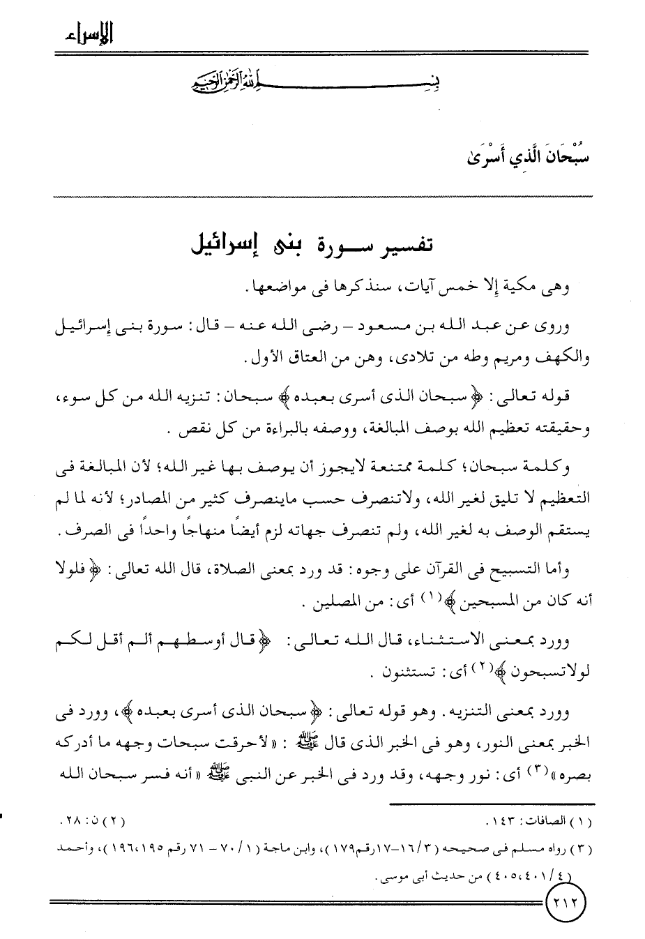 تَفْسِير سُورَة بني إِسْرَائِيل