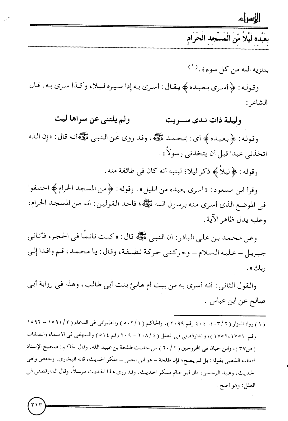 وَقَوله: {أسرى بِعَبْدِهِ} يُقَال: أسرى بِهِ إِذا سيره لَيْلًا، وَكَذَا سرى بِهِ. قَالَ الشَّاعِر: