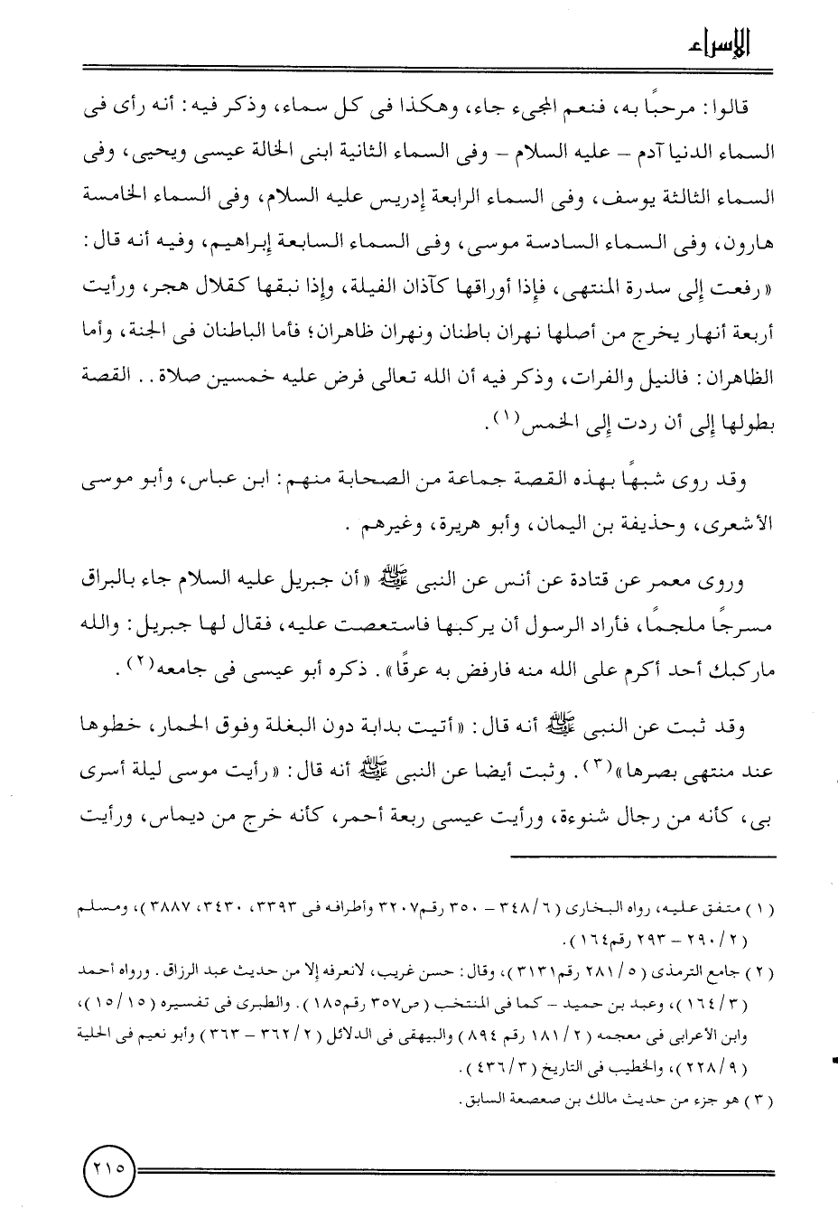 وَقد ثَبت عَن النَّبِي أَنه قَالَ: " أتيت بِدَابَّة دون البغلة وَفَوق الْحمار، خطوها عِنْد مُنْتَهى بصرها ". وَثَبت أَيْضا عَن النَّبِي أَنه قَالَ: " رَأَيْت مُوسَى لَيْلَة أسرِي بِي، كَأَنَّهُ من رجال شنُوءَة، وَرَأَيْت عِيسَى ربعَة أَحْمَر، كَأَنَّهُ خرج من ديماس، وَرَأَيْت
