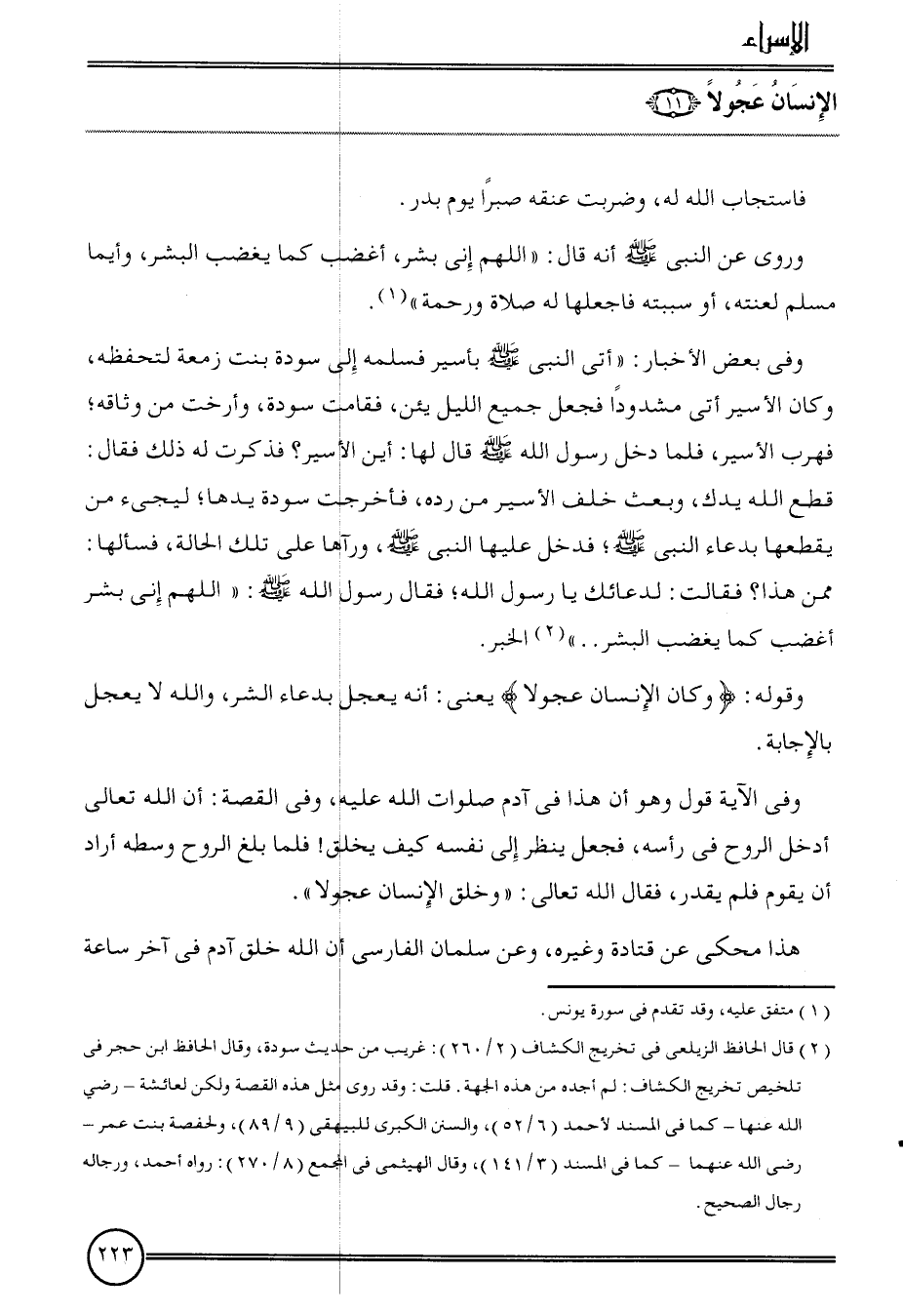 وَقَوله: {وَكَانَ الْإِنْسَان عجولا} يَعْنِي: أَنه يعجل بِدُعَاء الشَّرّ، وَالله لَا يعجل بالإجابة.