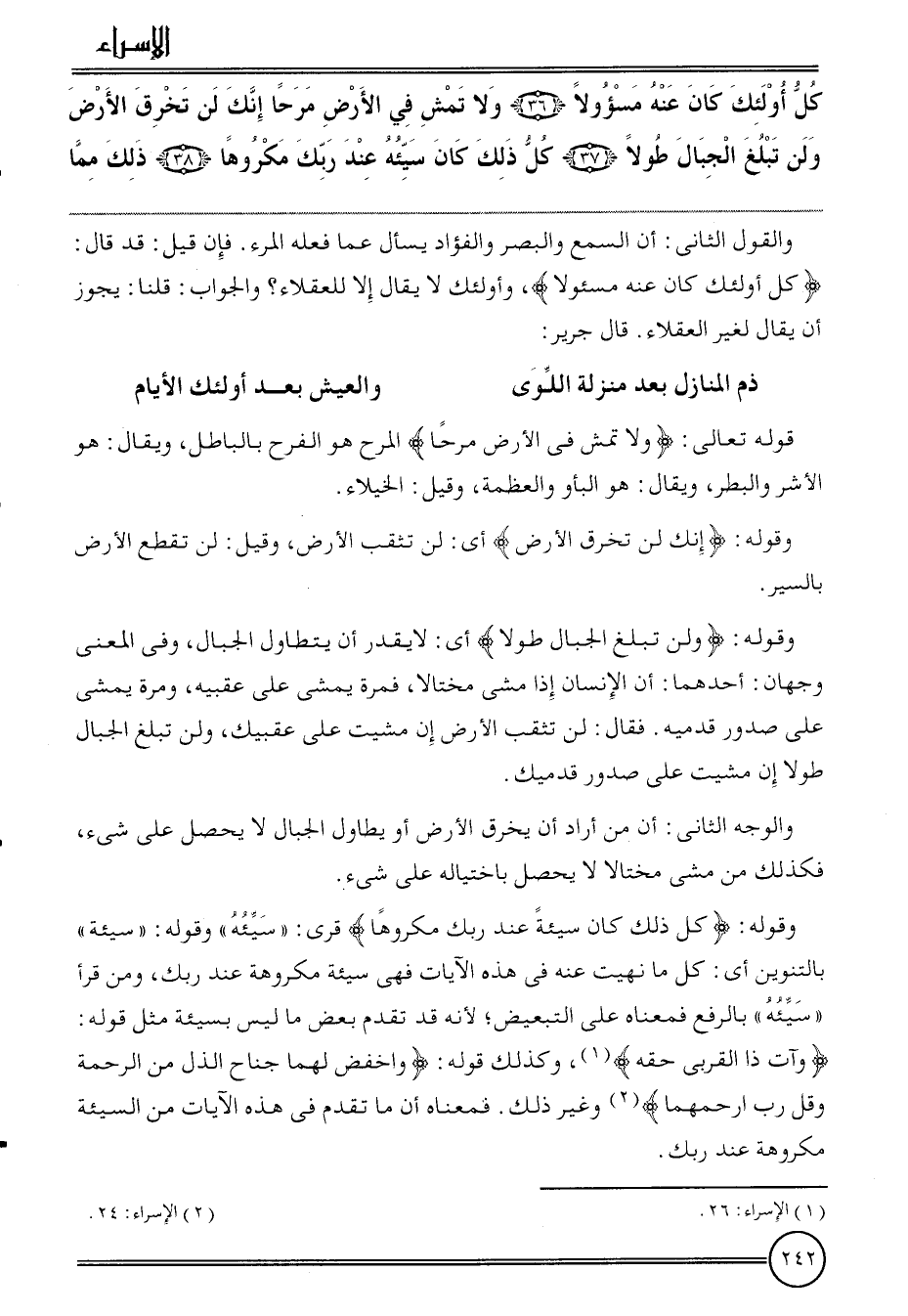 {كل أُولَئِكَ كَانَ عَنهُ مسؤولا (36) وَلَا تمش فِي الأَرْض مرحا إِنَّك لن تخرق الأَرْض وَلنْ تبلغ الْجبَال طولا (37) كل ذَلِك كَانَ سيئه عِنْد رَبك مَكْرُوها (38) ذَلِك مِمَّا}