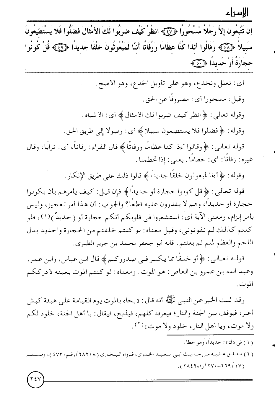 {إِن تتبعون إِلَّا رجلا مسحورا (47) انْظُر كَيفَ ضربوا لَك الْأَمْثَال فضلوا فَلَا يَسْتَطِيعُونَ سَبِيلا (48) وَقَالُوا أئذا كُنَّا عظاما ورفاتا أئنا لمبعوثون خلقا جَدِيدا (49) قل كونُوا حِجَارَة أَو حديدا (50) }