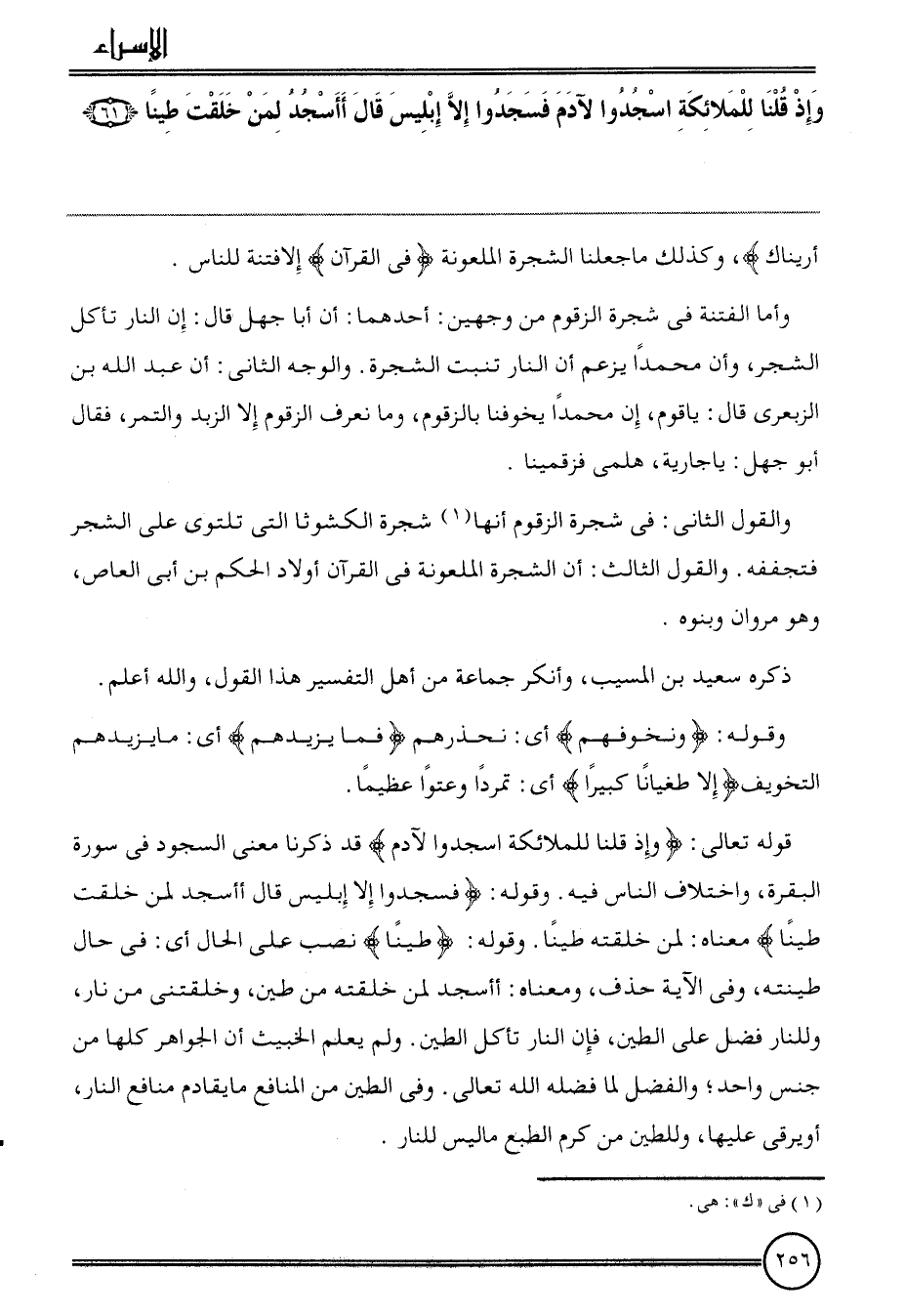{وَإِذ قُلْنَا للْمَلَائكَة اسجوا لآدَم فسجدوا إِلَّا إِبْلِيس قَالَ أأسجد لمن خلقت طينا (61) } أريناك) ، وَكَذَلِكَ مَا جعلنَا الشَّجَرَة الملعونة {فِي الْقُرْآن} إِلَّا فتْنَة للنَّاس.