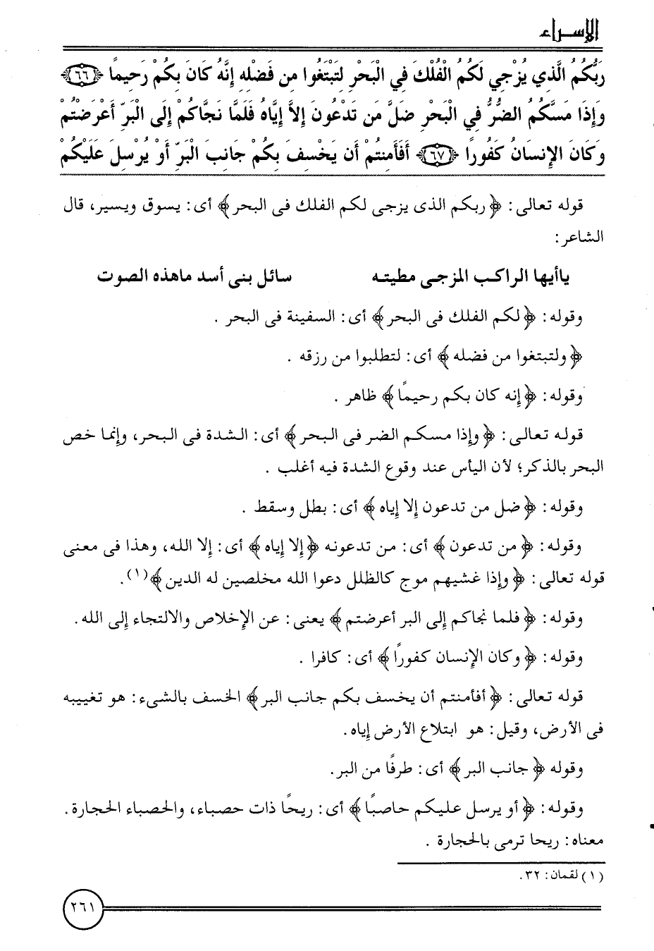 {ربكُم الَّذِي يزجي لكم الْفلك فِي الْبَحْر لتبتغوا من فَضله إِنَّه كَانَ بكم رحِيما (66) وَإِذا مسكم الضّر فِي الْبَحْر ضل من تدعون إِلَّا إِيَّاه فَلَمَّا نجاكم إِلَى الْبر أعرضتم وَكَانَ الْإِنْسَان كفورا (67) أفأمنتم أَن يخسف بكم جَانب الْبر أَو يُرْسل عَلَيْكُم}